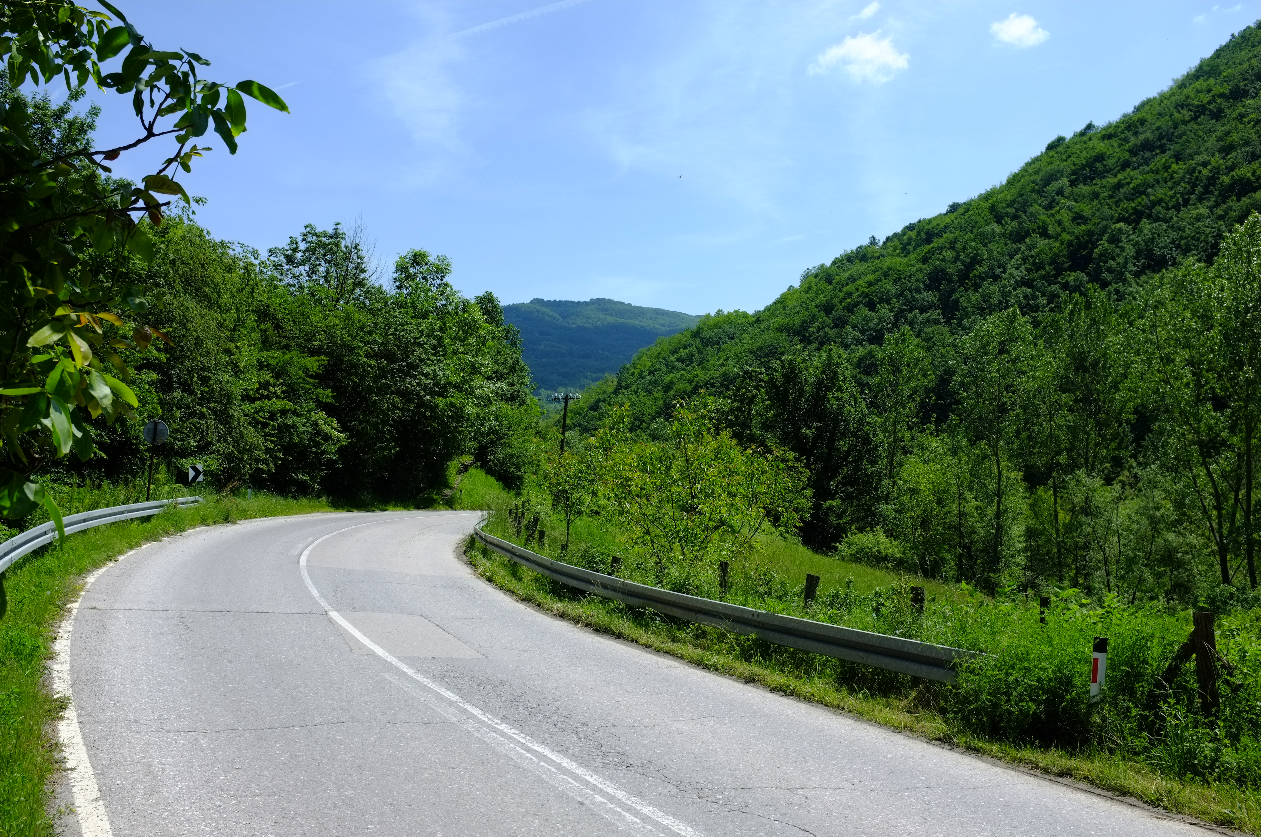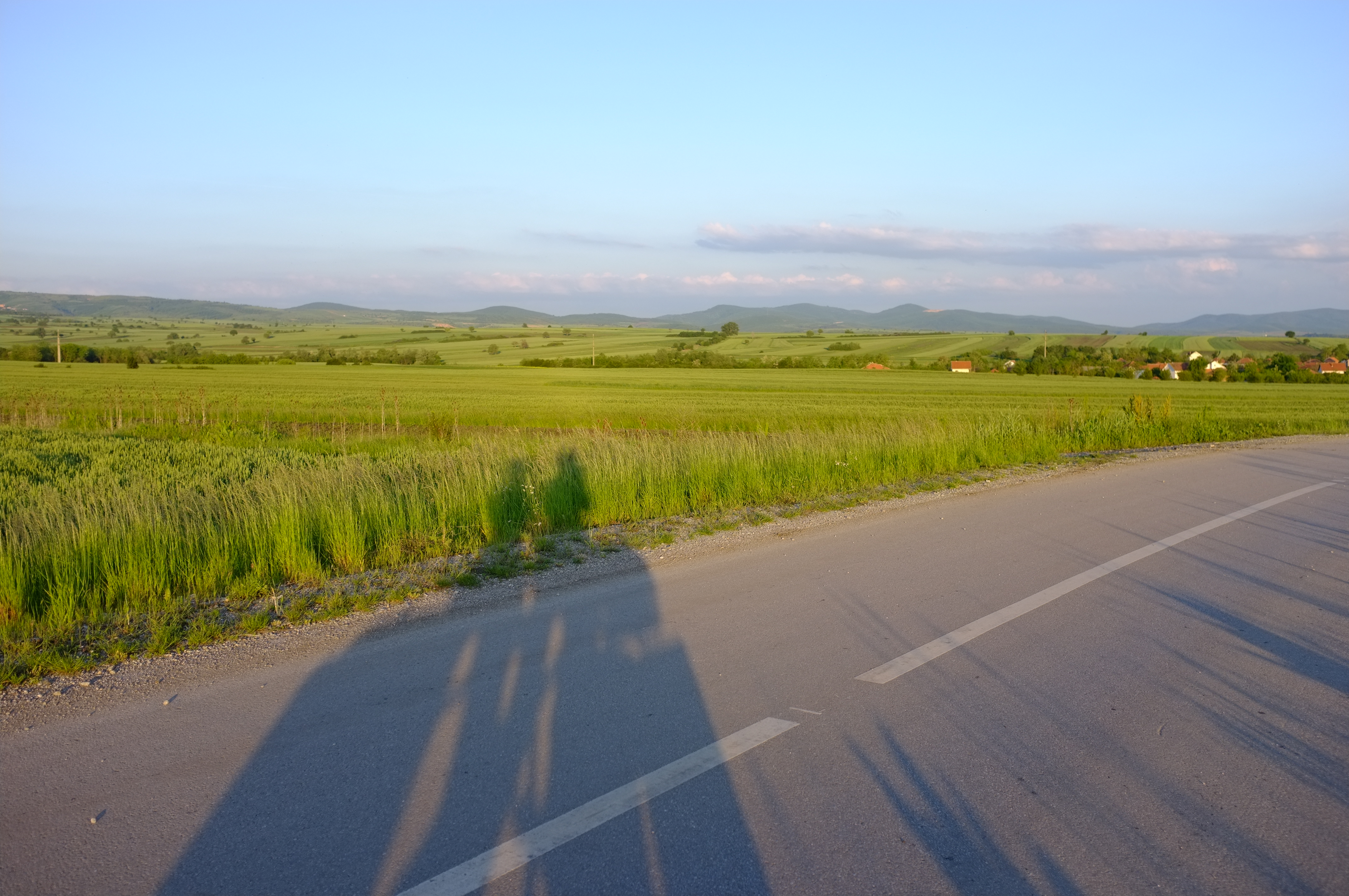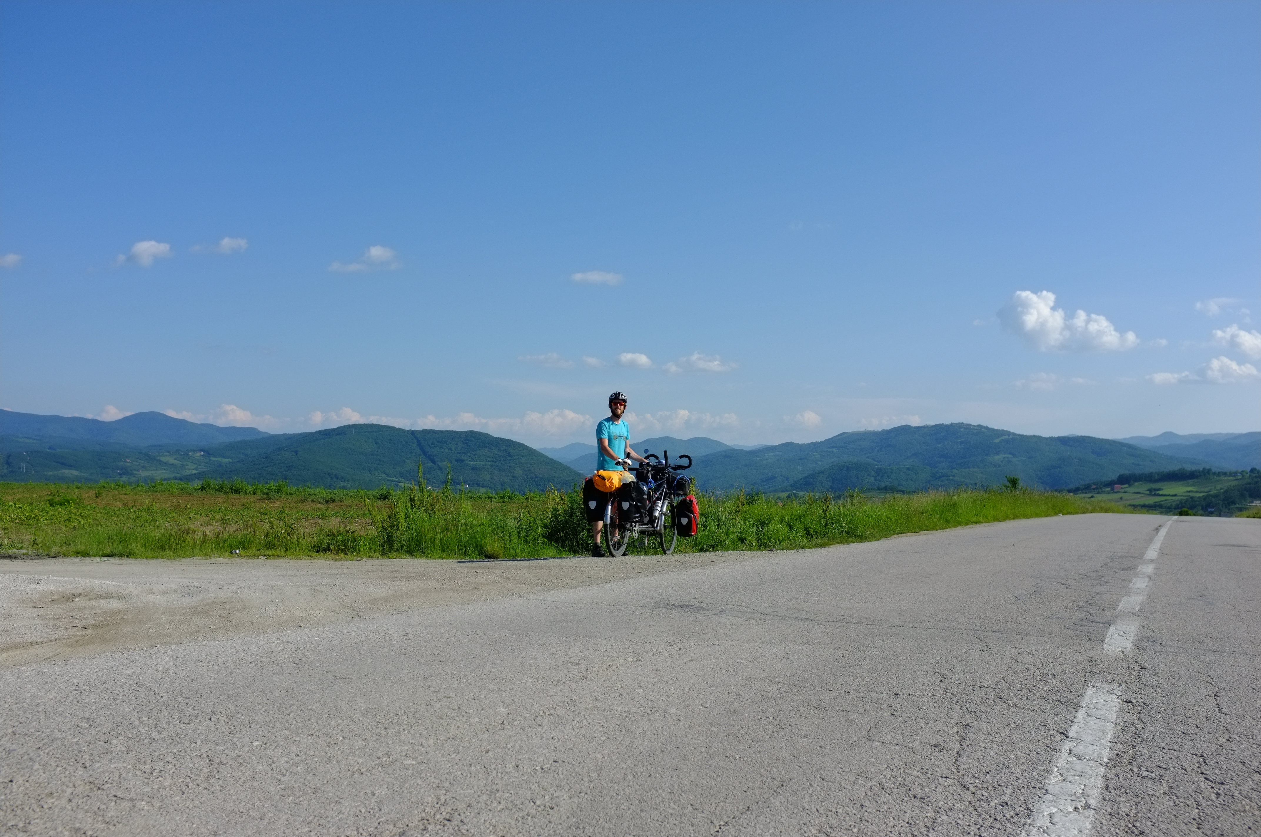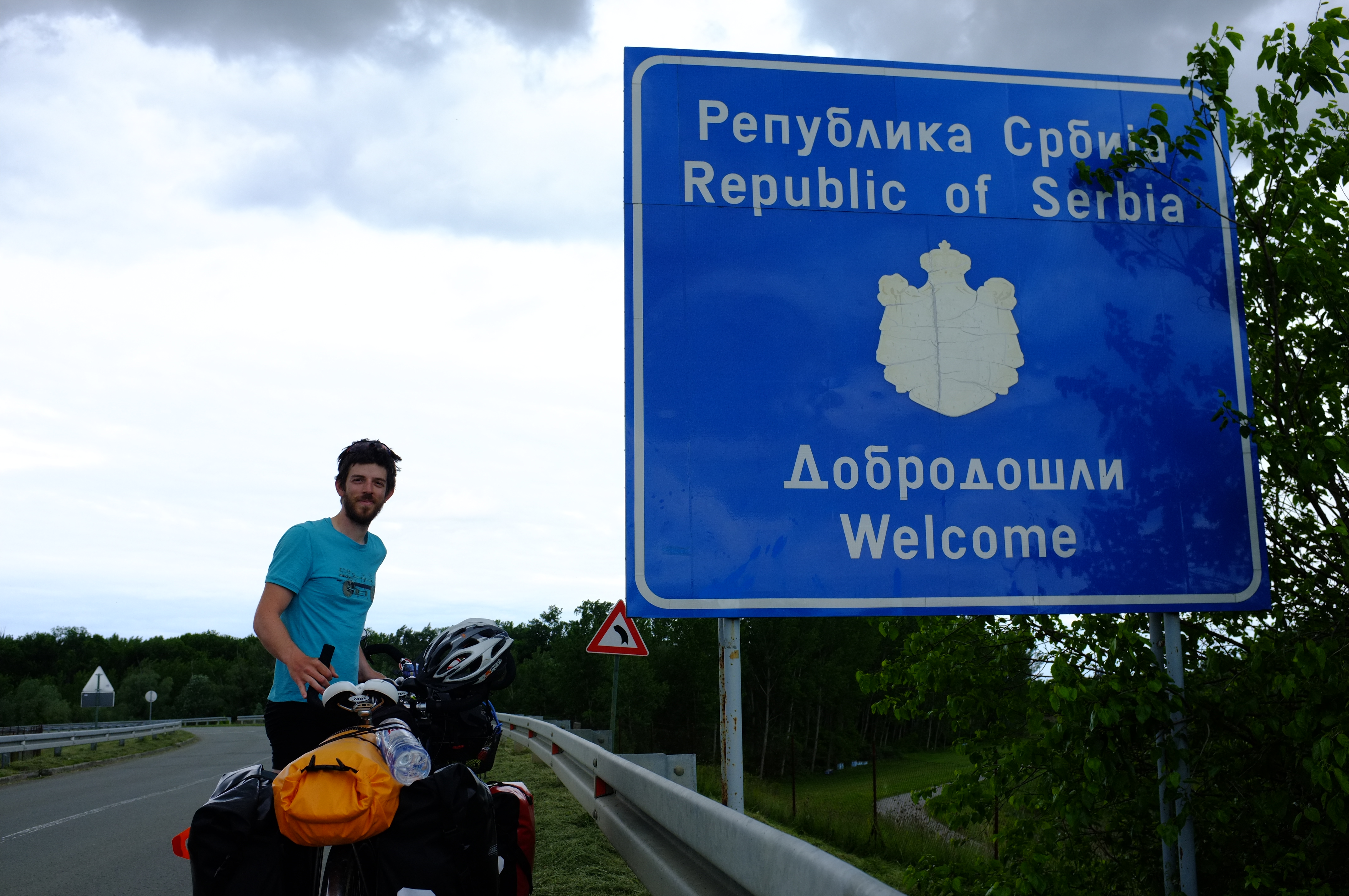 Après une longue journée sous le soleil, après avoir roulé 100km, après une longue côte sur une grande route quasiment vide nous arrivons à la frontière avec le bébé de l’Europe : le Kosovo. Cette journée fut donc particulière car nous étions contents d’avoir enfin du soleil, nous ne savions pas où nous allions dormir , Serbie ? Kosovo ? Flo était en grande forme et nous avons donc poussé vers le Kosovo.