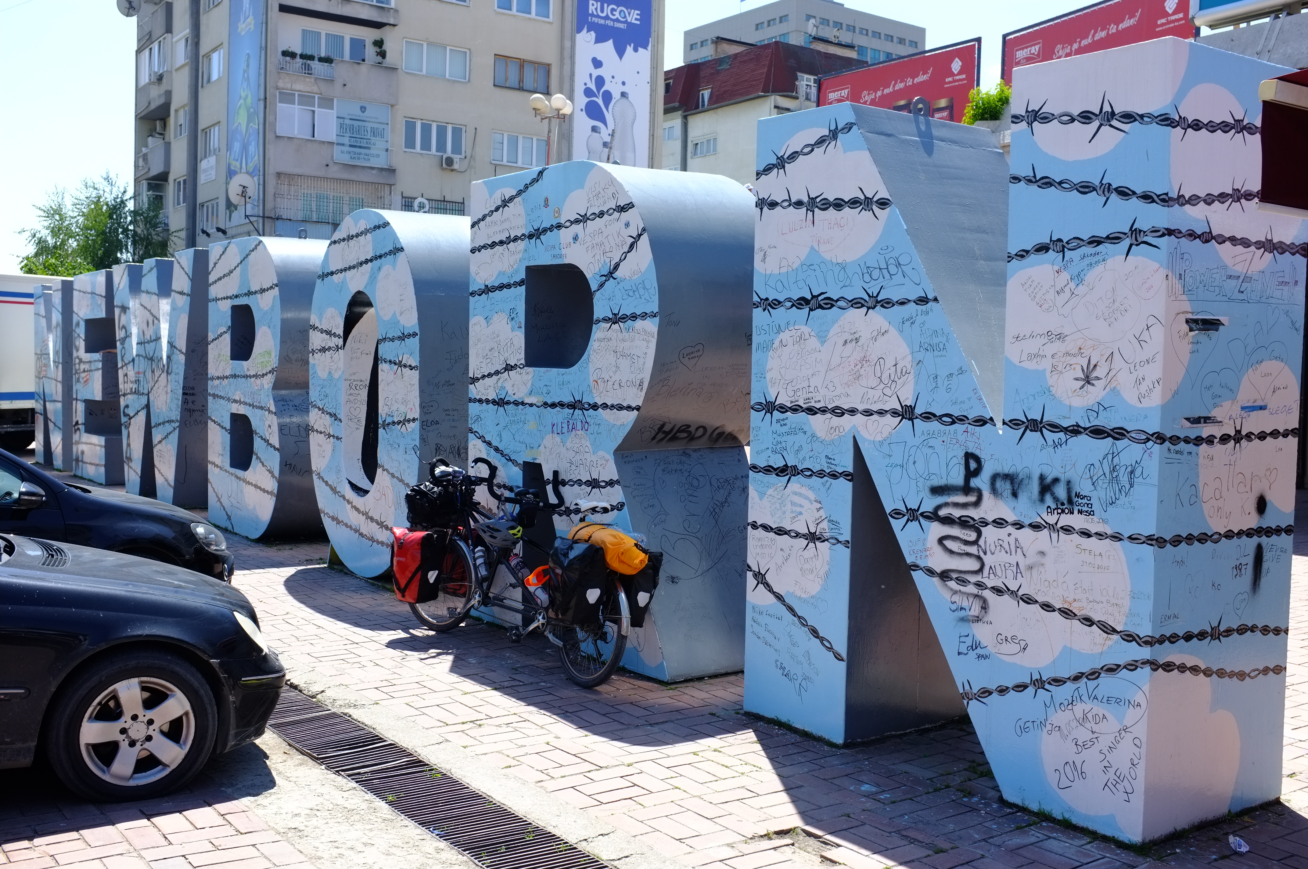 Le lendemain nous partons à la découverte de Pristina, capitale du Kosovo. Nous avons l’impression d’être au Moyen-Orient : mosquées, bazars, thé turc… et la diaspora albanaise (en Suisse, Allemagne, Autriche) rapporte pas mal d’argent ce qui donne une impression de richesse comparé au sud de la Serbie. On a donc une très bonne surprise en arrivant dans la capitale ! On se laisser tenter par les petits plaisirs de l’Orient 🙂 Une place possède un « monument » symbolique appelé « New Born » pour rappeler la création récente de cet état anciennement en Serbie. Depuis la guerre de 1999, le Kosovo n’est plus une région mais un pays !