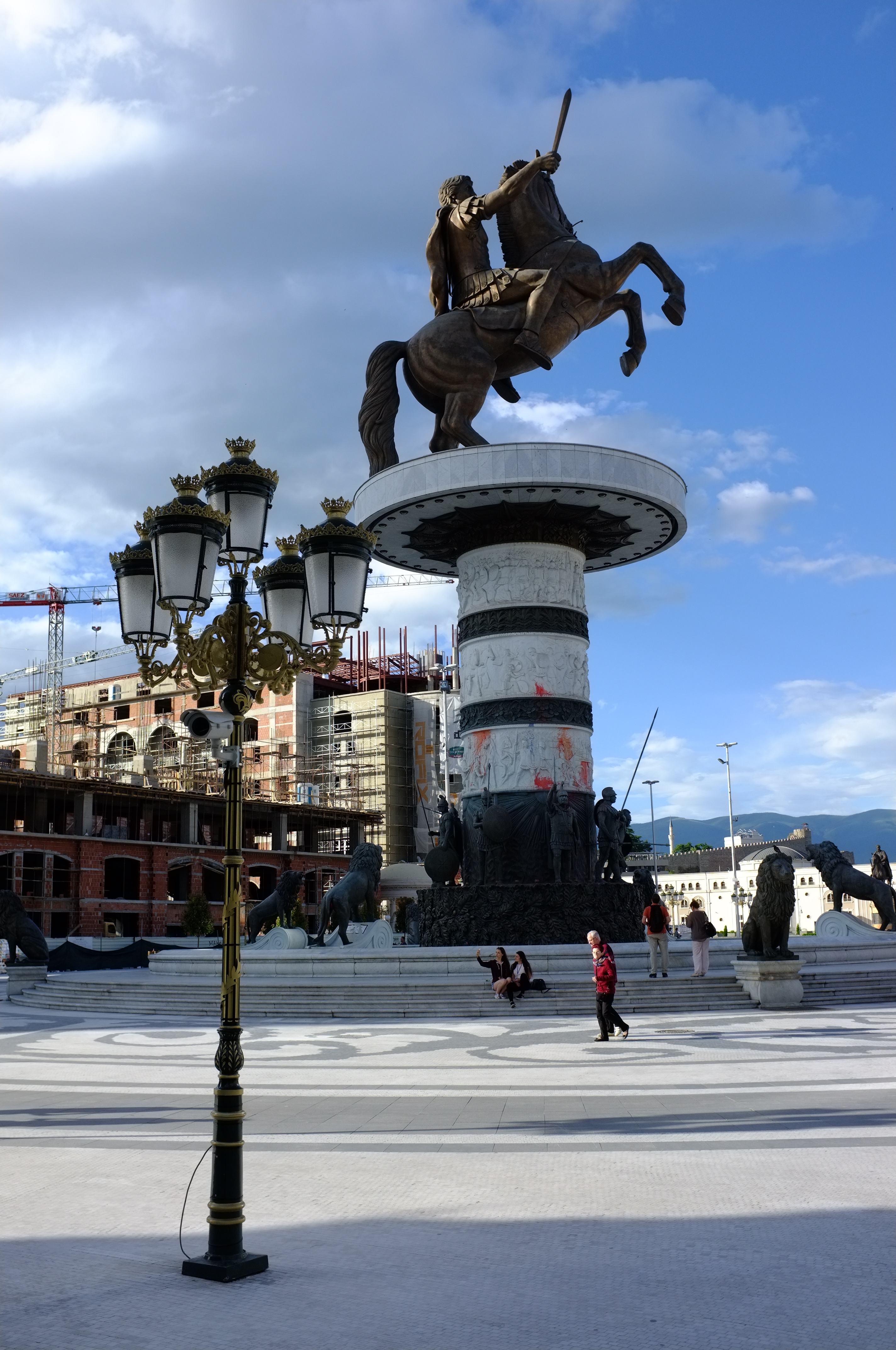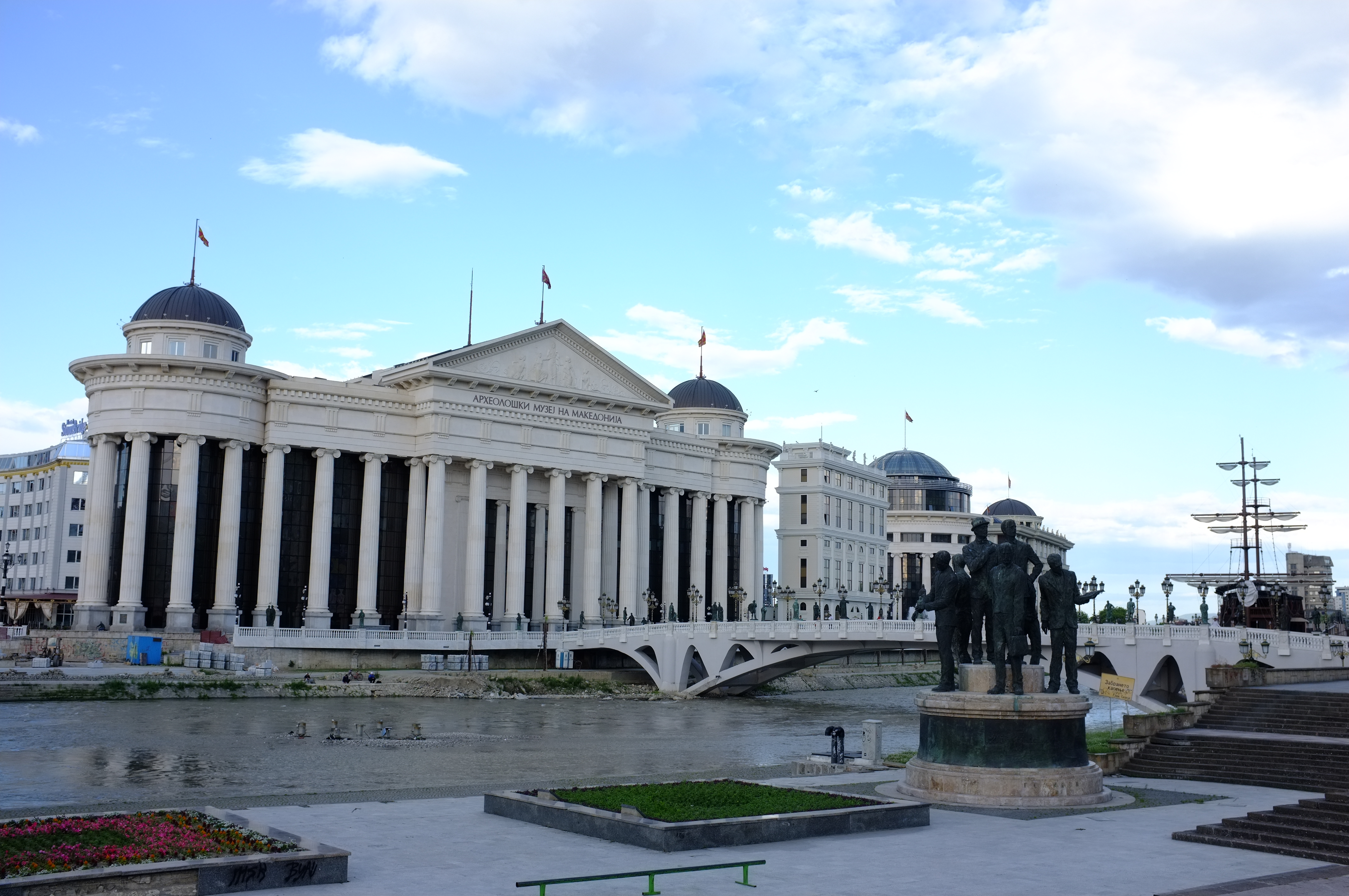 Depuis quelques années le gouvernement s’est mis en tête de remettre en avant l’histoire antique de la Macédoine et de gommer le passage communiste. Un vaste programme de reconstruction de la ville est en cours. Le riche passé antique du pays est au coeur de ce projet avec construction de ministères dignes de temples Grecs (macédoniens pardon…), statues gigantesques dans le centre ville, ponts en marbre. C’est aussi une manière de revendiquer l’identité macédonienne très cher au pays en ce moment. Nos futures discussions le confirmeront.
