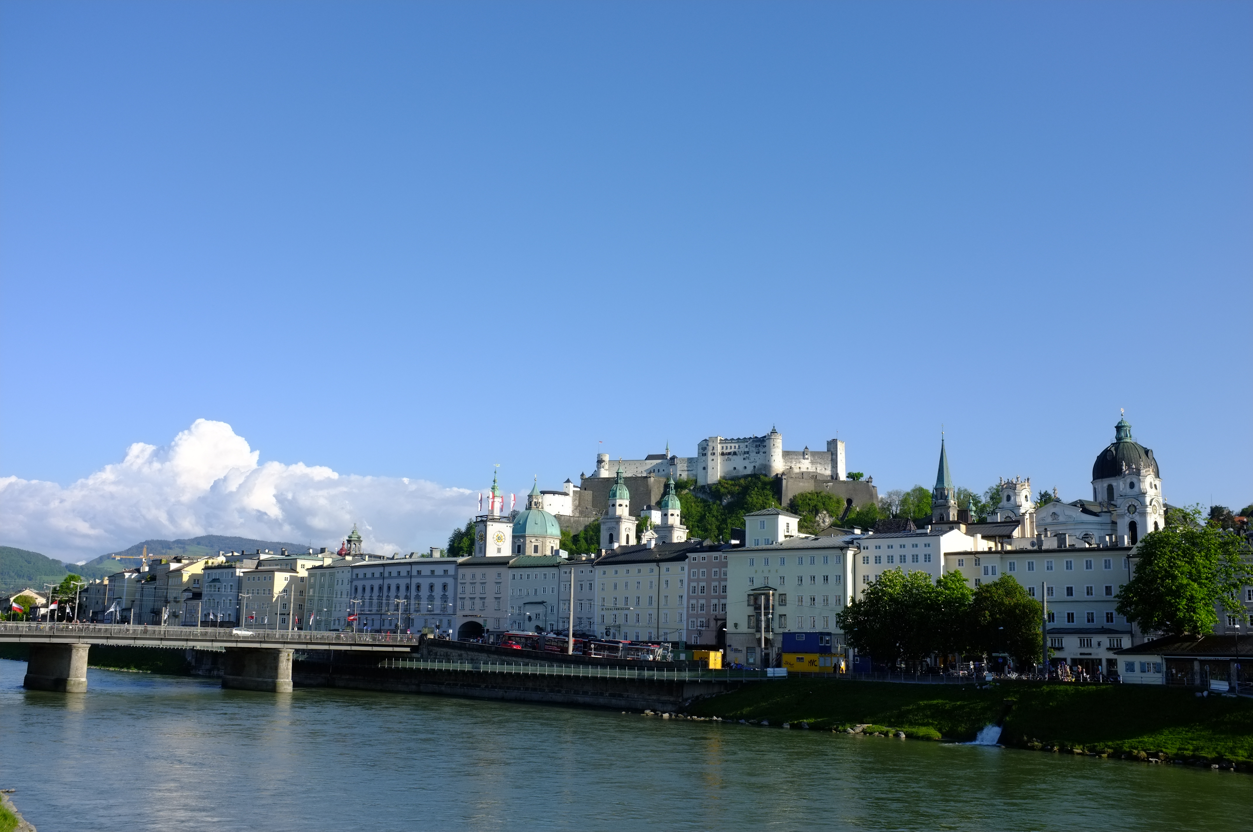 Arrivée donc à Salzbourg, LA ville de Mozart. Étrange sensation dans cette ville : tout est « parfait », super touristique, et tout tourne autour de Mozart. Bref, pas trop notre truc même si le château envoie de la grosse currywurst !