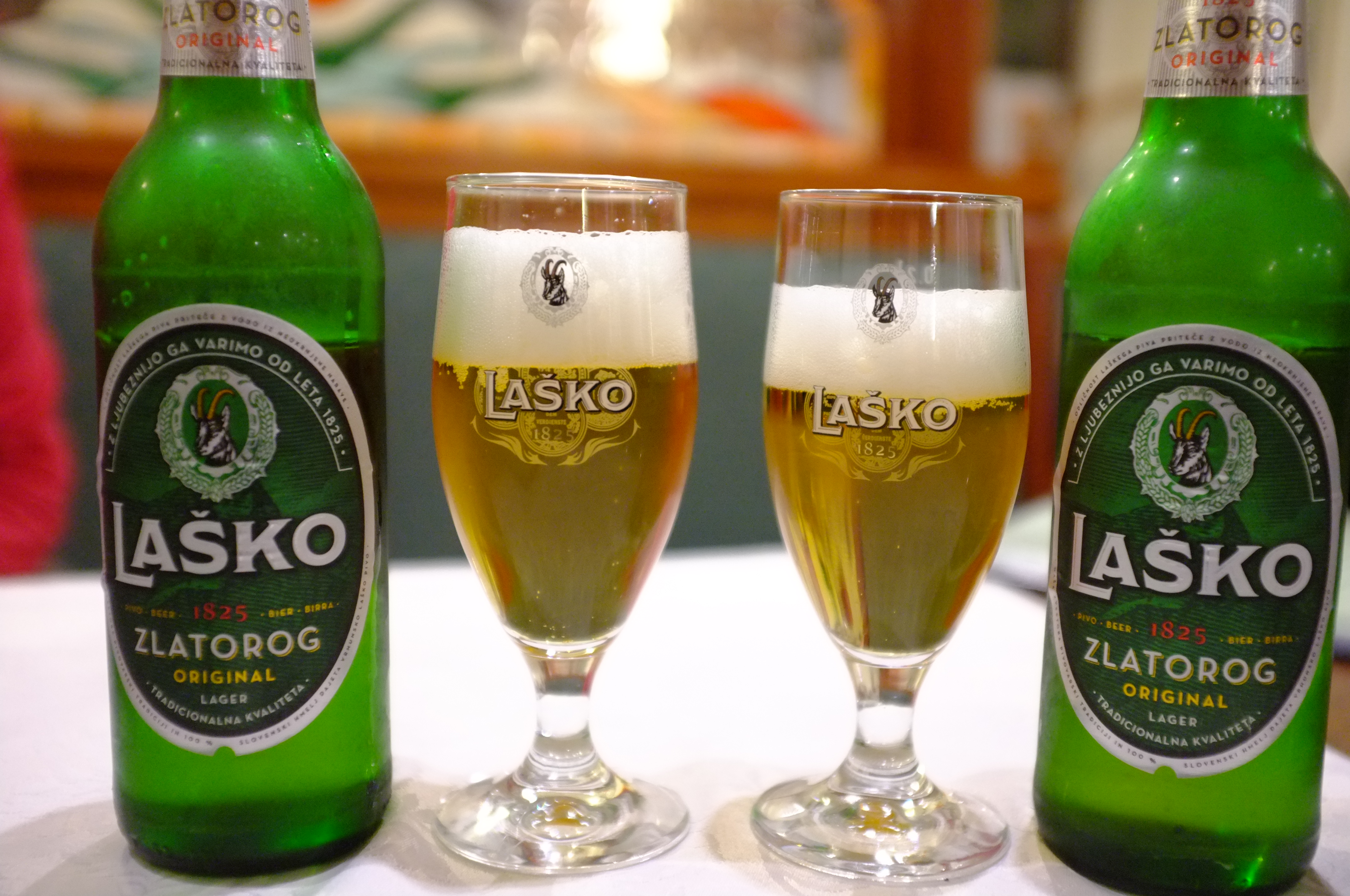 4 heures plus tard nous arrivons de nuit à Ljubljana. Nous en profitons pour déguster un Burek – sorte de pain au chocolat mais fourré avec du cottage cheese ou viande, puis nous nous laissons tenté par une petite bière locale (@PA, oui c’est vrai qu’on parle souvent de bière !).